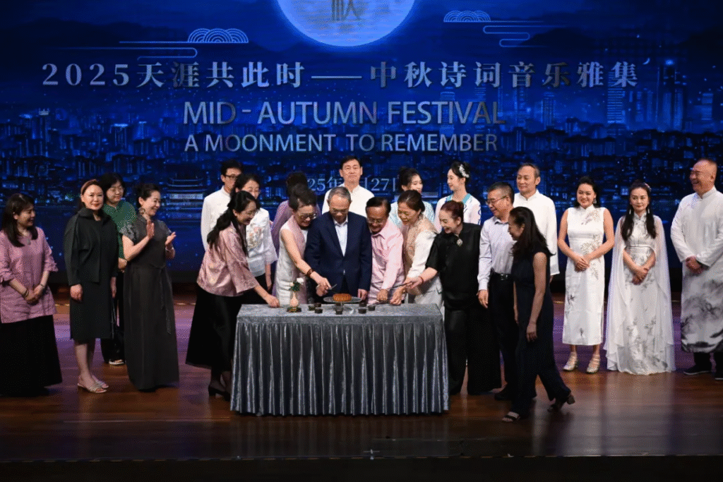 演出结束后,曹忠明大使夫妇与嘉宾们共同切开象征团圆和承载祝福的中秋月饼,为现场观众送上节日问候。