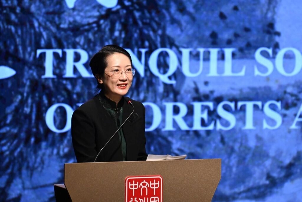 陈莉在致辞中表示,中国国家博物馆遴选馆藏明清山水画佳作,系统展示中国十五至十九世纪中国山水画流变,探究古代中国人体察人生、观照世界的图像方法与思想观念。展览还融合了现代投显科技,设 VR 互动展区等,在古画与今人之间搭建起视觉对话路径,完成一次中华美学的视觉与精神的山水旅程。