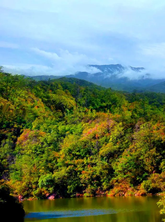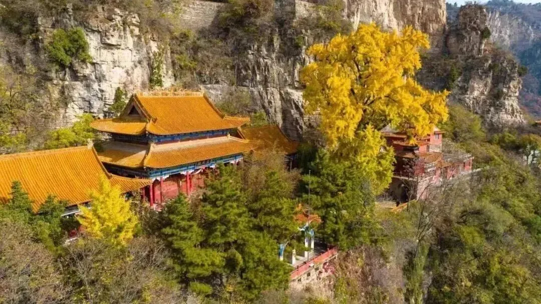 天桂山的“红枫燃霞”:被称作“北方桂林”的天桂山,秋日里成了红色的海洋。喀斯特奇峰上,黄栌、枫树层层叠叠,从山脚到山顶,红得热烈、黄得明亮、绿得深沉,风一吹,满山谷的“霞海”翻涌,登高远眺,仿佛整个天地都被这秋色浸透。
