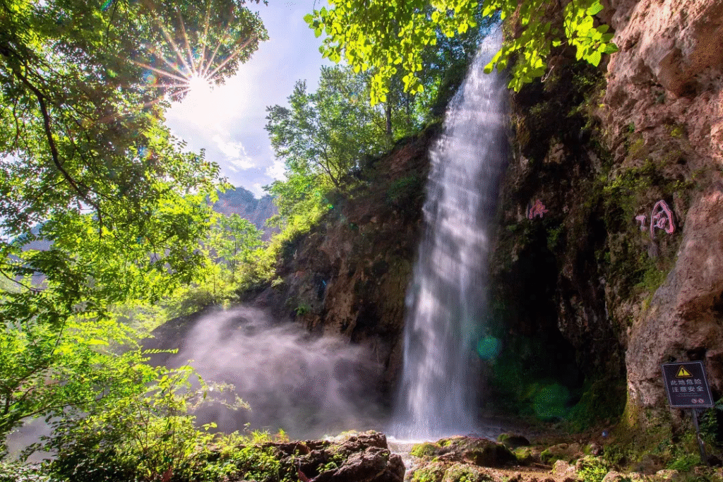 天桂山的“红枫燃霞”:被称作“北方桂林”的天桂山,秋日里成了红色的海洋。喀斯特奇峰上,黄栌、枫树层层叠叠,从山脚到山顶,红得热烈、黄得明亮、绿得深沉,风一吹,满山谷的“霞海”翻涌,登高远眺,仿佛整个天地都被这秋色浸透。