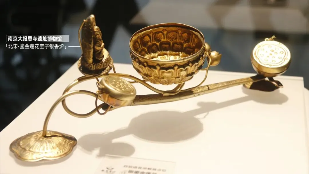 南京大报恩寺遗址博物馆中静卧着一朵“银莲花”。这件北宋时期的鎏金莲花宝子银香炉出土自长干寺地宫,堪称佛教造像与金银工艺的融合巅峰。