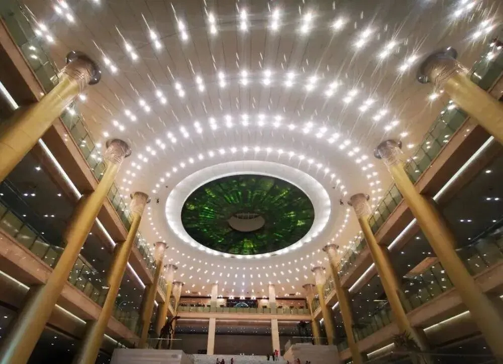 山东博物馆一楼大厅的玉璧造型穹顶时