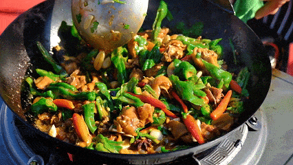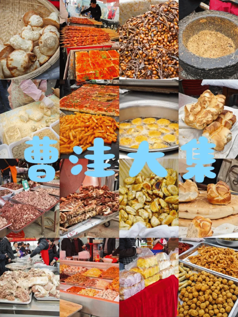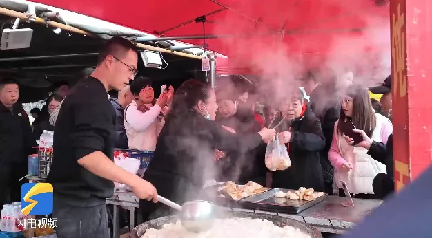 集市上临沂炒鸡、肉煎包、农家自产果蔬、全羊汤……让人感叹山东专属的物美价廉和收获满满。
