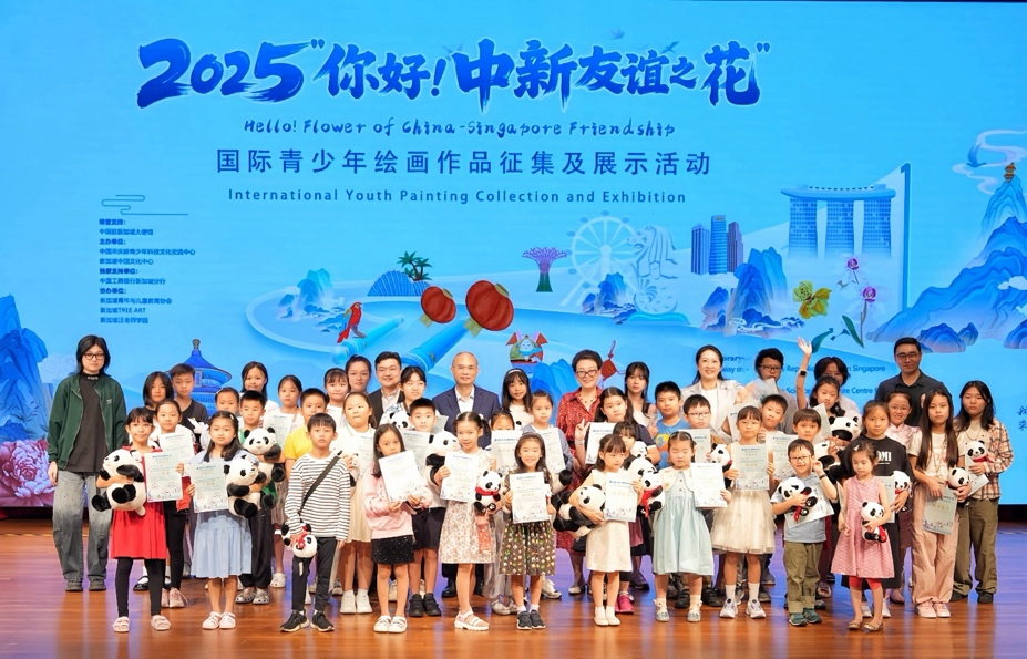 2025年12月27日,由中国驻新加坡大使馆荣誉支持,新加坡中国文化中心与中国宋庆龄青少年科技文化交流中心共同主办,中国工商银行新加坡分行独家支持,新加坡青年与儿童教育协会、新加坡Tree Art和新加坡汪老师学园协办的2025“你好!中新友谊之花”国际青少年绘画作品征集及展示活动颁奖典礼暨优秀作品开幕式在新加坡中国文化中心举行。中国驻新加坡大使曹忠明和夫人杨青、新加坡中国文化中心兼旅游办事处主任孔媛、中国工商银行新加坡分行行长杨雨、汪老师学园CEO汪昕辰、Tree Art代表老师罗娇桧,与 45 名新加坡赛区获奖青少年及家长代表等百余人共同出席活动。