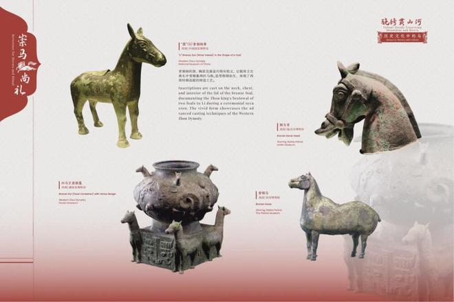 自周朝始,随着古人对马匹驯化和利用的深入,马与礼制相融合,成为王权和地位的象征。以马为主体造型的青铜器皿、默然守护的石骏,以磅礴气势彰显着主人的财富与权势,亦承载着严格的礼制秩序。古人常以马匹或马形器物作为祭品,供奉给神灵或祖先,成为沟通天地的媒介。