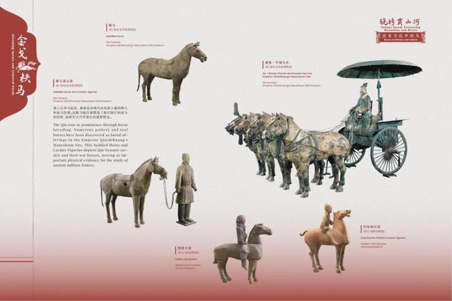 驯马、牧马、乘马、役马、驭马、市马、娱马,华夏先民在与马的长期互动中,赞其力量与速度,感其忠诚与勇气,羡其自由与奔放,沉淀出独具特色的马文化。马的形象也开始广泛出现在各类器物中,铜液浇筑奔马之雄姿,釉彩描绘骏马之灵动,金银錾刻天马之华贵,玉石雕琢良驹之温润,栩栩如生,如见其形,如闻其声。古人也常以马喻人,指代贤能才俊,赞颂其品德。与此同时,马经常与龙并称,“龙马精神”一词不仅是文化符号,更象征着中华民族奔腾不息的力量与勇往直前的精神。
