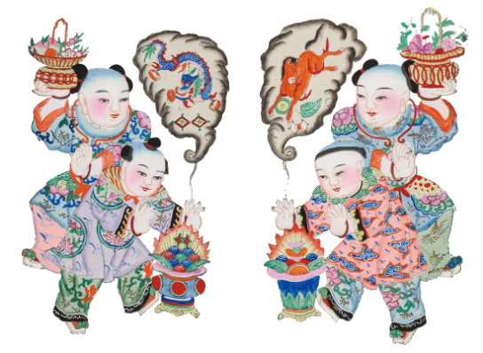 ▲杨柳青年画龙马进宝图(天津博物馆)