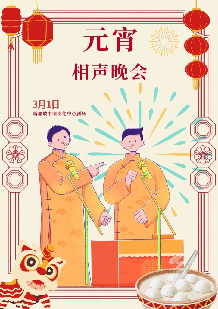 一年一度的元宵相声晚会又和大家见面啦!2026“欢乐春节”系列活动——第三届欢乐元宵相声晚会将于3月1日(农历正月十三)在新加坡中国文化中心热闹登场,诚邀您与家人朋友一同欢聚,共度喜庆佳节!