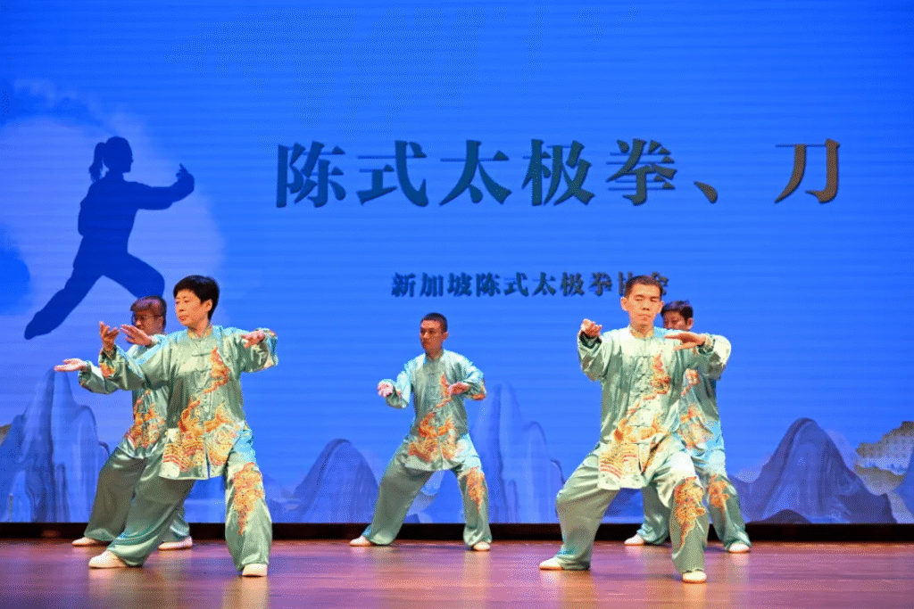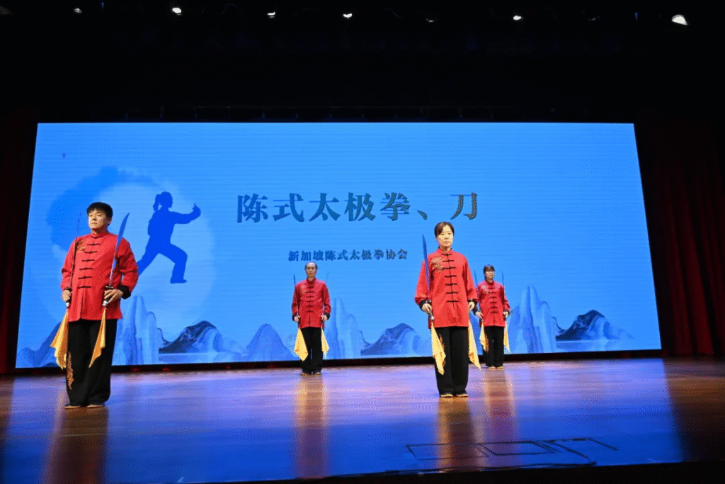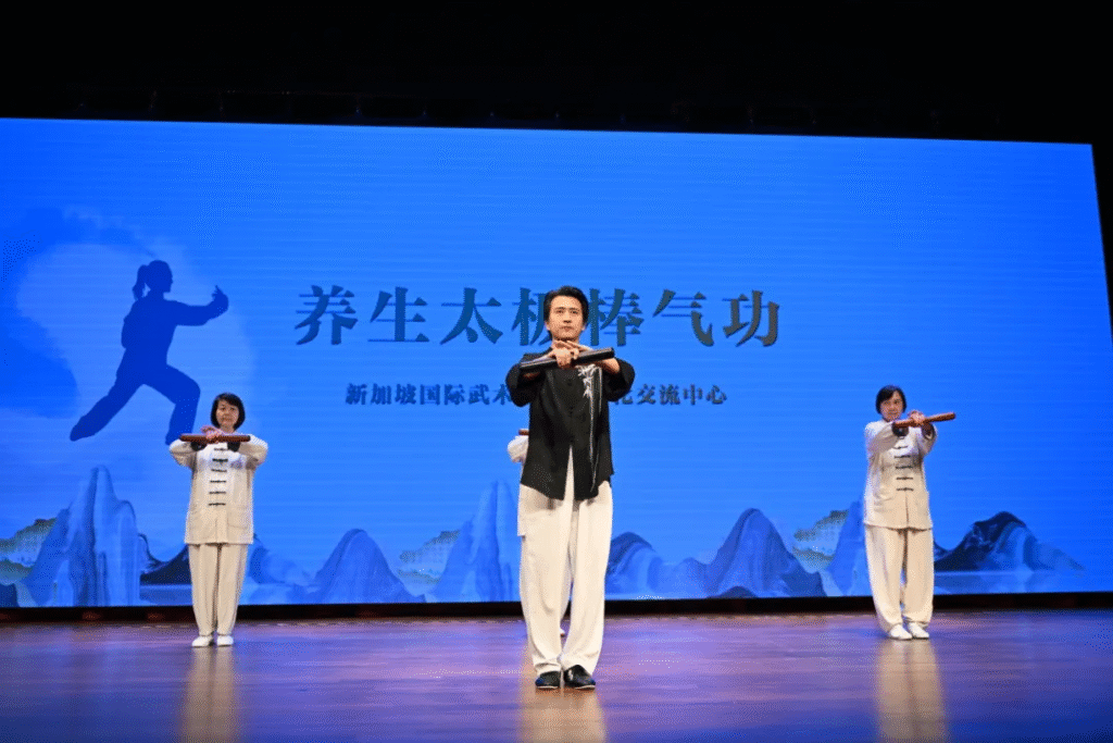 活动在刚柔并济的《陈式太极拳双刀》中拉开帷幕。新加坡陈式太极拳协会的精彩演绎气势磅礴、张弛有度,赢得满堂喝彩。随后,八卦掌名家戈春艳女士带来的《八卦掌》表演身法灵动、神采飞扬,将内家拳的精妙展现得淋漓尽致。紧接着,新英武术培训中心呈现了舒展大方、行云流水的《杨式太极拳》;新加坡国际武术和太极文化交流中心带来融合器械与养生理念的《养生太极棒气功》;新加坡孙氏内家拳研究会展示了圆活紧凑的《传统孙氏太极套路》;潮阳太极气功养生轩演绎的《养生气功八段锦》,则以简练柔和的动作诠释了传统养生功法。