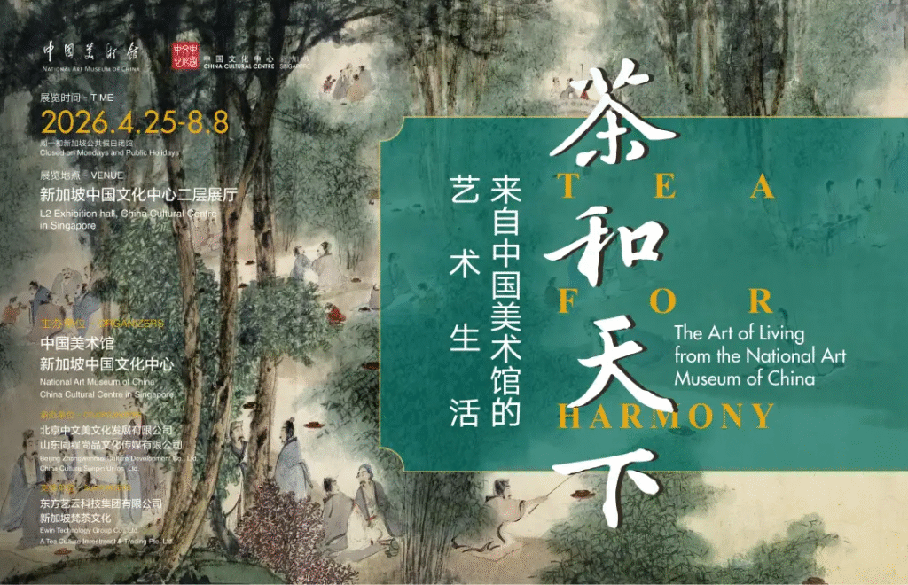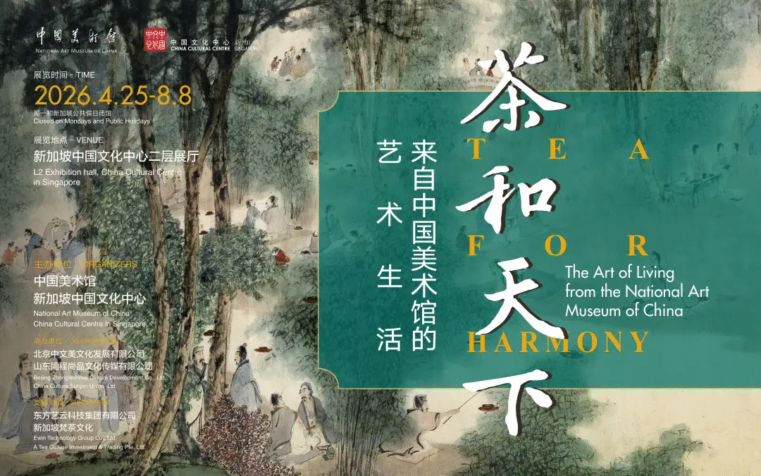 2026年4月25日至2026年8月8日,由中国美术馆与新加坡中国文化中心联合主办的“茶和天下——来自中国美术馆的艺术生活”在新加坡中国文化中心展出。展览以傅抱石先生笔下的《兰亭图》为叙事起点,引领观众重返千年“曲水流觞”的诗意现场,将画中的盎然生机与清雅意趣,通过巧思设计,融入现代茶器、文房及生活用品之中,旨在让高雅艺术从殿堂走进日常。