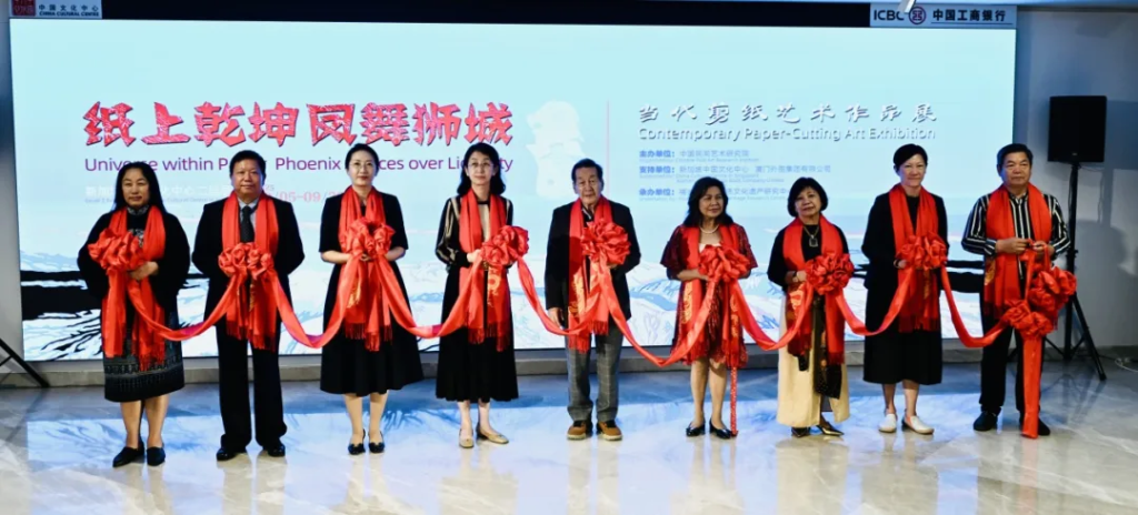 此次展览将持续至2025年9月20日,共设立”丝路华章””大美中国””民族剪韵””禅心妙剪””匠艺新篇”五大主题展区,汇聚了中国当代剪纸艺术名家数十年创作的代表作品58幅。展览内容涵盖自然风光、人文交流、传统民俗、人物肖像等多元领域,形式上融合线条与色彩、单色与套色、染色与贴裱等创新技法,展现了传统艺术在当代的创新与发展。欢迎前来新加坡中国文化中心,领略中国剪纸艺术的独特魅力与时代风采。