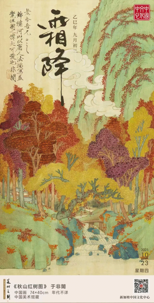 2025年,新加坡中国文化中心携手中国美术馆推出“中国美术馆名作中的二十四节气”,将最具文化特质和民族特色的二十四节气与中国美术馆藏经典名作相结合,“典藏活化”,讲述经典作品和创作者背后的故事,普及二十四节气传统文化知识,让新加坡民众通过新媒体欣赏到中国美术馆的经典美术作品。